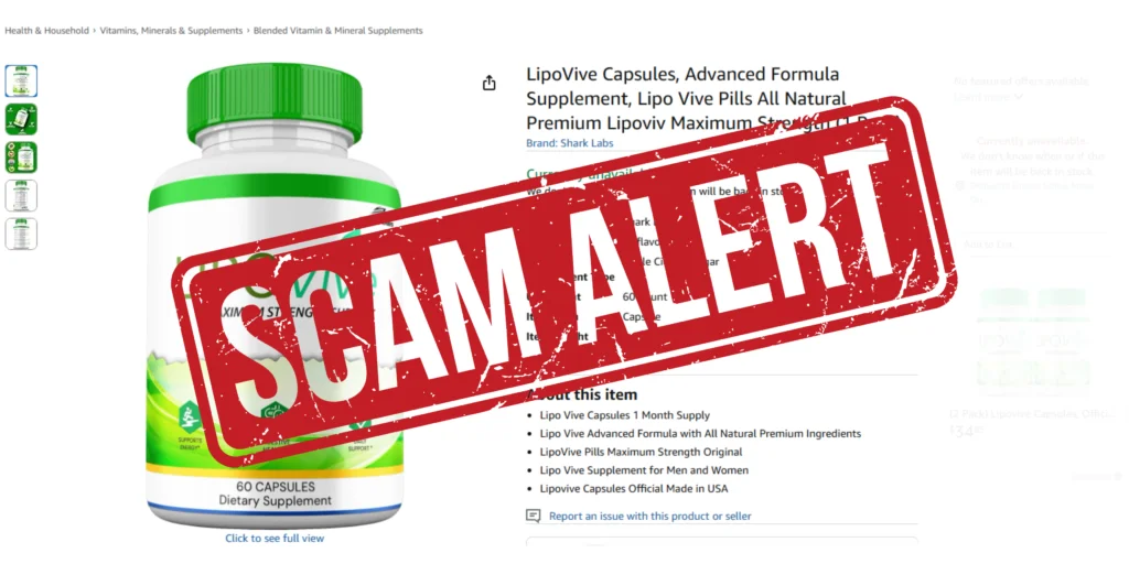 Beware of fake Lipovive supplements! Many people fall victim to scams by ordering from unofficial sources. Buying from Amazon, Walmart, or eBay may seem cheaper, but these jars are often counterfeit and contain completely different, potentially dangerous ingredients.